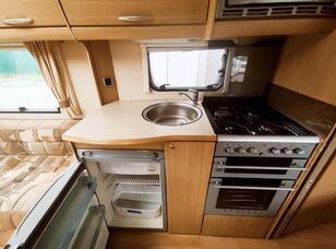 Большой просторный караван, для путешествий и комфортного проживания 4 человек. В задней части расположенна просторная ванная комната с душевой кабинкой, раковиной, туалетом.